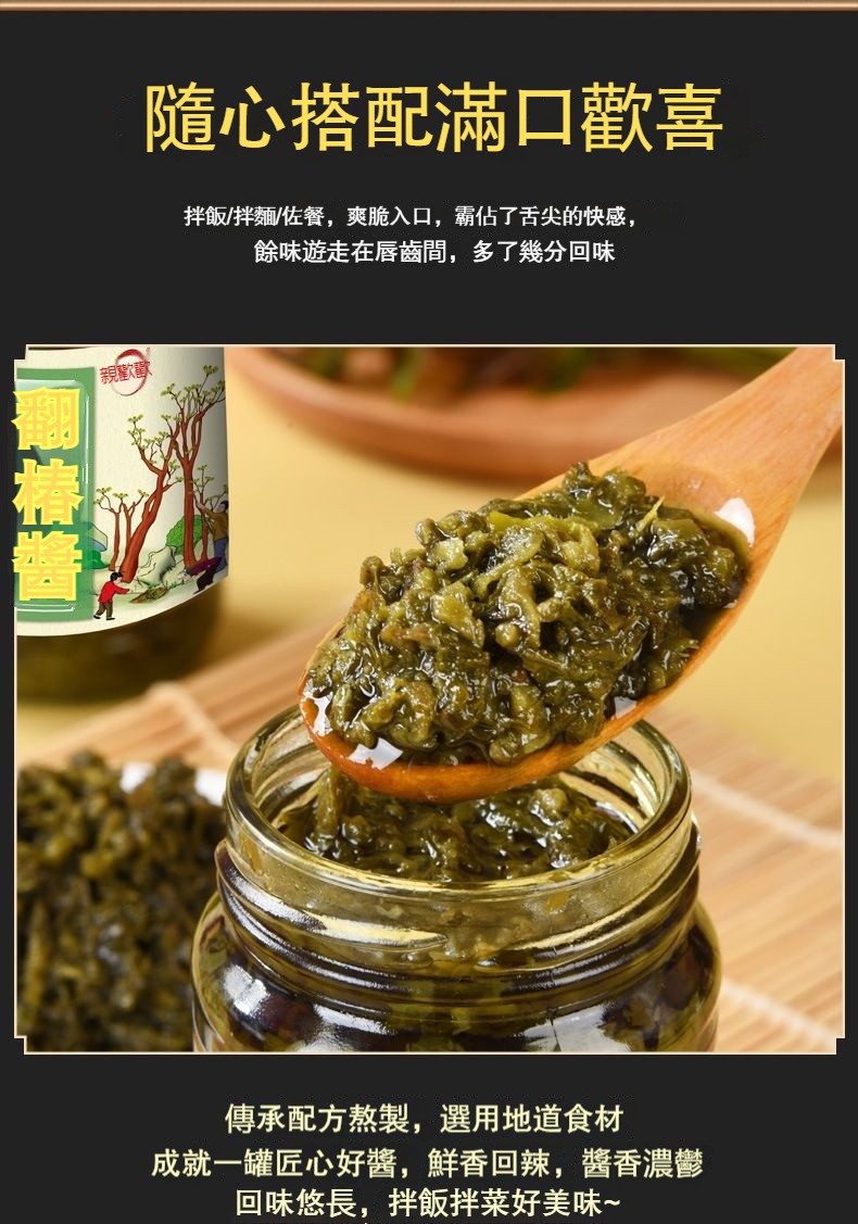 20分鐘前 【樹上蔬菜】亞洲第一抗癌蔬菜,精選新鮮香椿芽 手工製成 口味純正 鮮嫩爽脆 - 🔥98%客戶選擇【下殺 八入組】 僅需NT$1298【可吃半年】 均價162