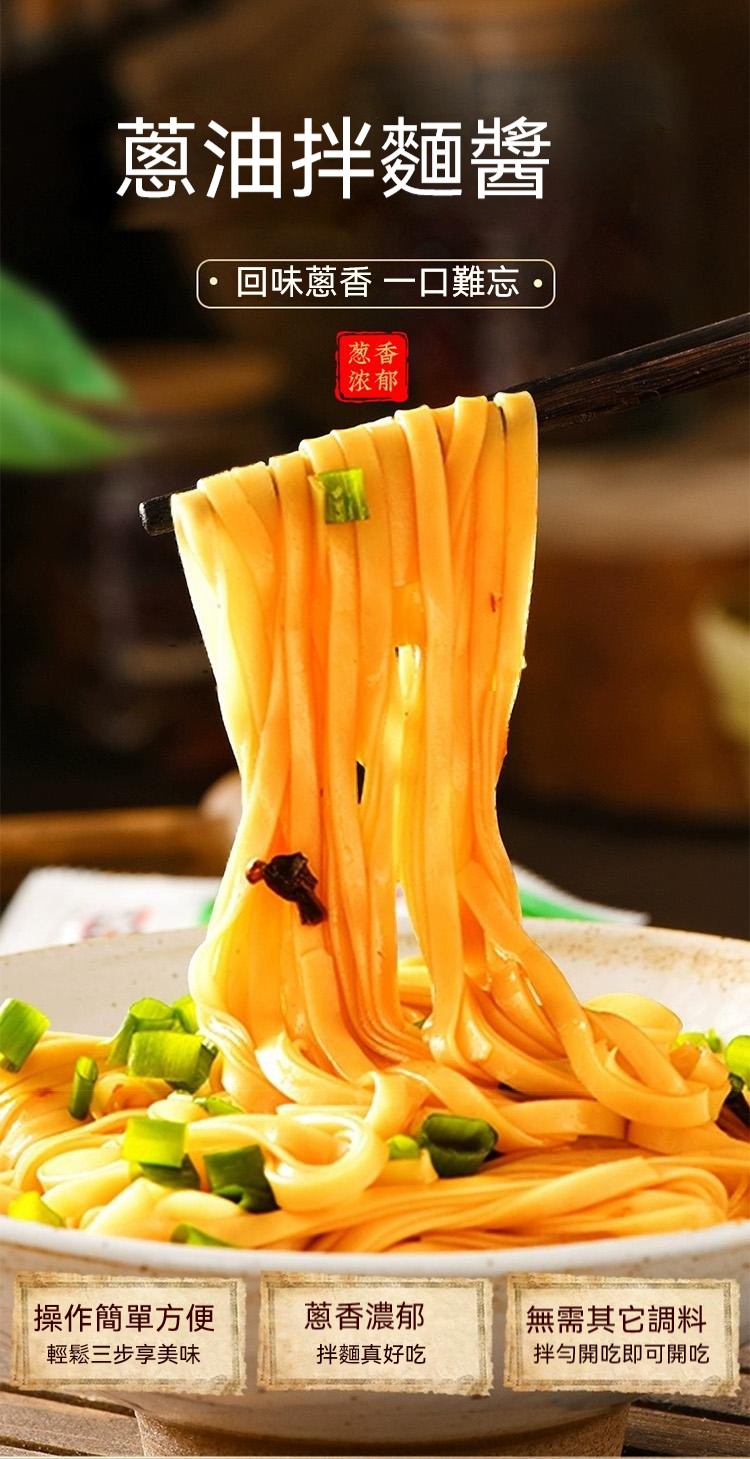7分鐘前醇厚麵醬,完美搭配麵食,展現獨特風味 ,五分鐘就能吃上的蔥油拌面 ,無需繁瑣步驟 ,開瓶即食 油潤蔥香即刻享用 ,增鮮提香 ,秒變大廚 ,飯或者面都能一勺搞定 - 【98%客戶選擇】4入組-NT$1180