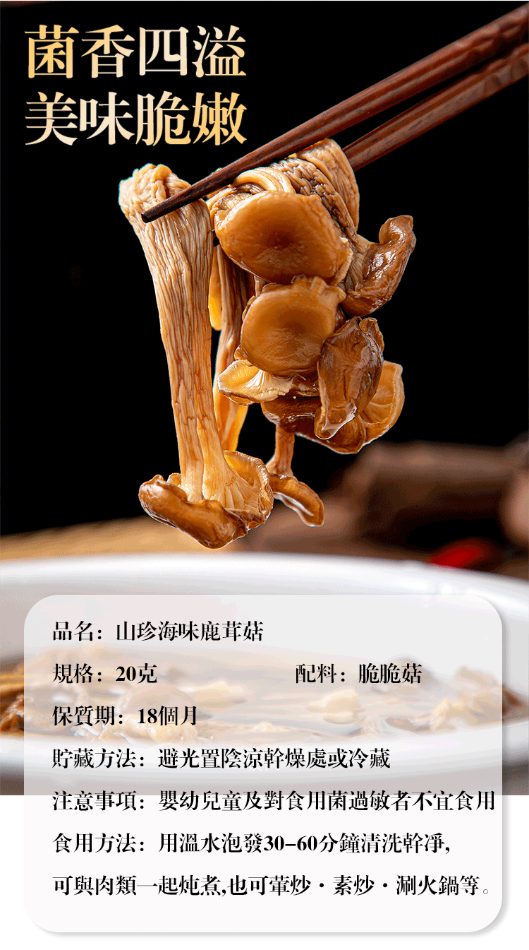 15分鐘前 【煲湯炒菜下飯必備】山珍海味鹿茸菇 - 8入組-NT$1098